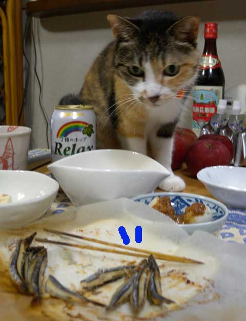 焼き魚 おさしみだと1号との激しいバトルが始まります(笑)