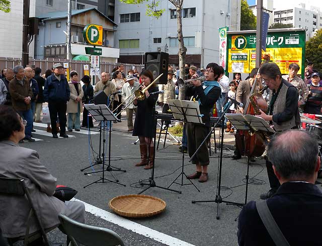 投げ銭のザルは空でしたがジャズもやってました。