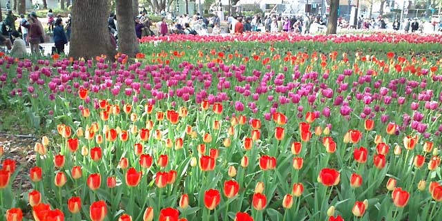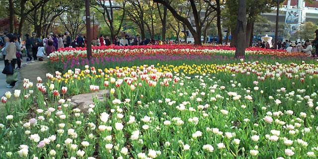 16万株が咲いているチューリップは横浜公園スタジアム横。