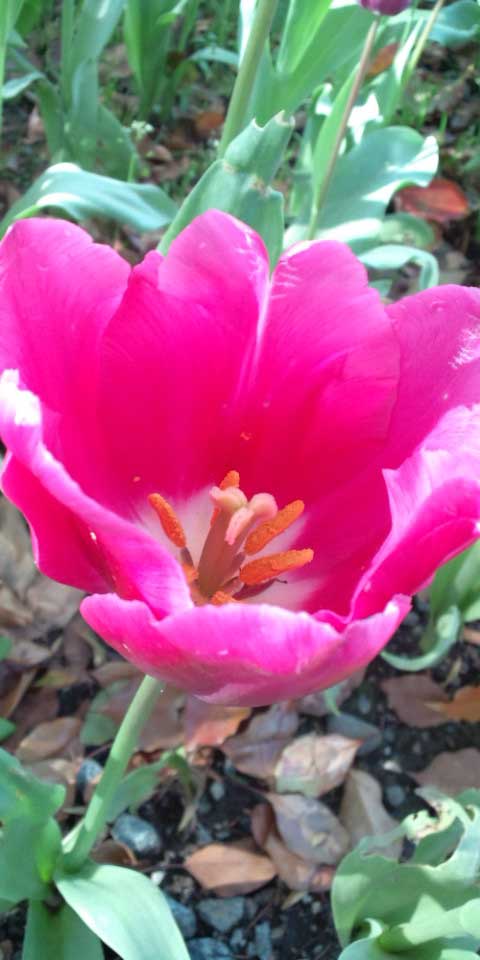 携帯のパノラマには収まりきれない満開のチューリップ♪