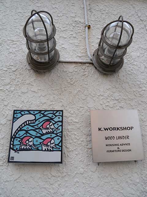 おされな家具屋さんの表札の横にいました。