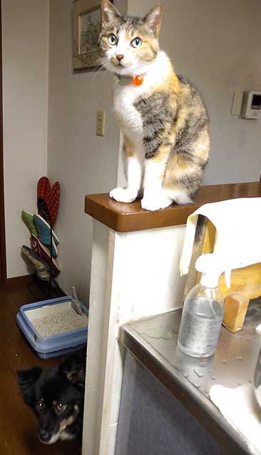 食卓で1号と熾烈なきびなご取り合いをしている姿を眺めている私です。