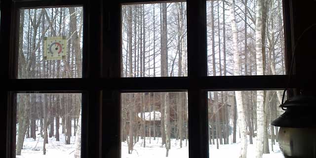 お天気雨ならぬお天気雪の窓の外。