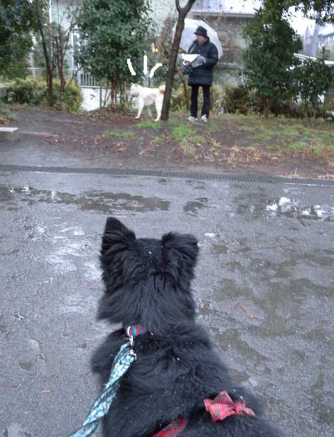 いつもの公園でお友達わん発見。