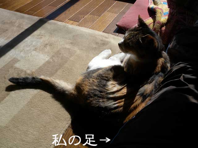 私の足にどかっと寄りかかって