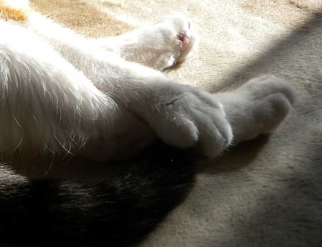 私の足の上にきゅうの頭。