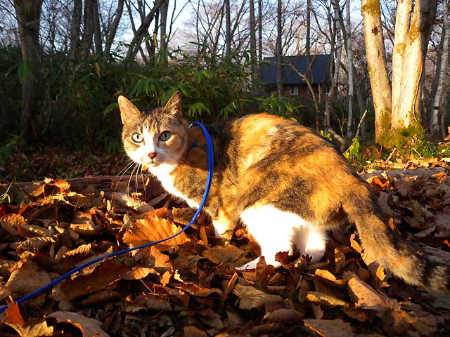 ふかふかの落ち葉が気持ちよさそう。