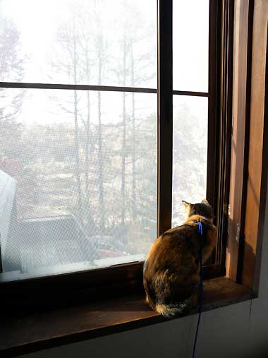 今回は泊った部屋の前でも動こうとしませんでした。