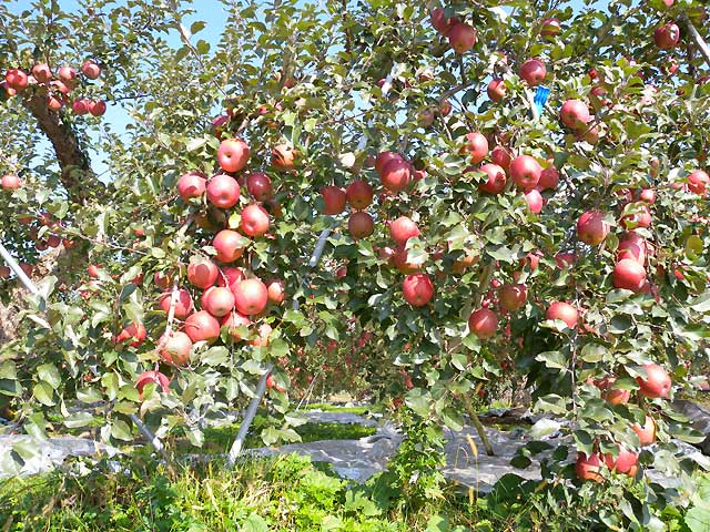 産直横に見事なりんご畑❤