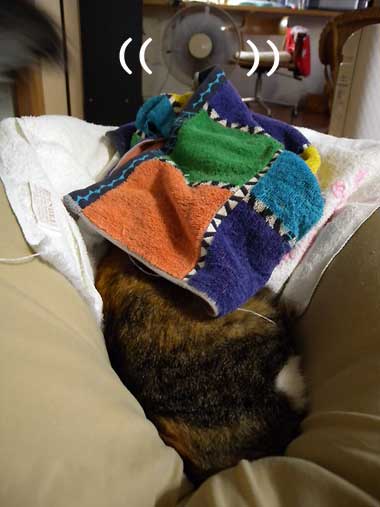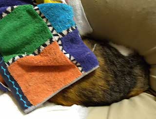 カーペットカバーにしたとたんれ~ろれろと入念な毛づくろいはじめました。