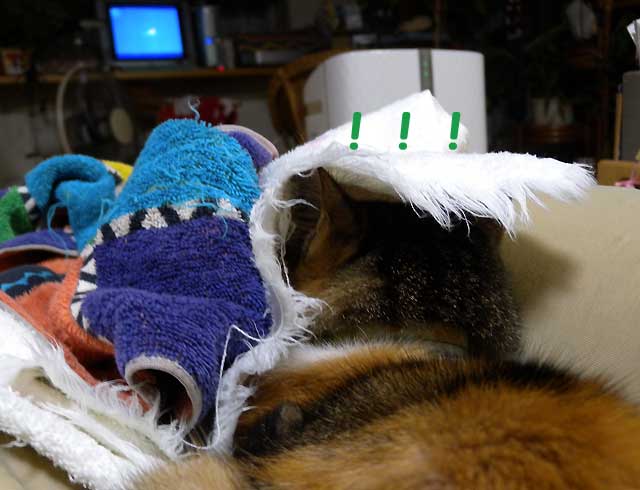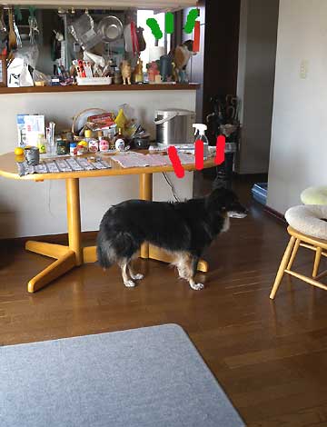 珍しく飛び上がってちゃぶ台の下に潜ったつくしであります。