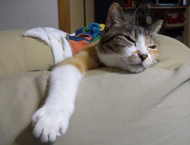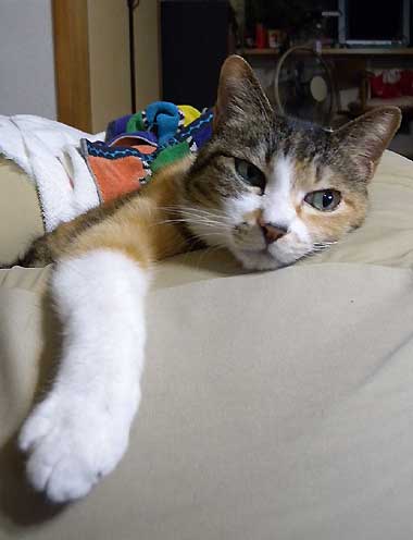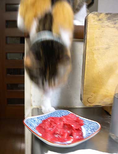 よっぽどおいしかったのかいつもは2切れ食べるとぷいっといなくなるつくしですが
