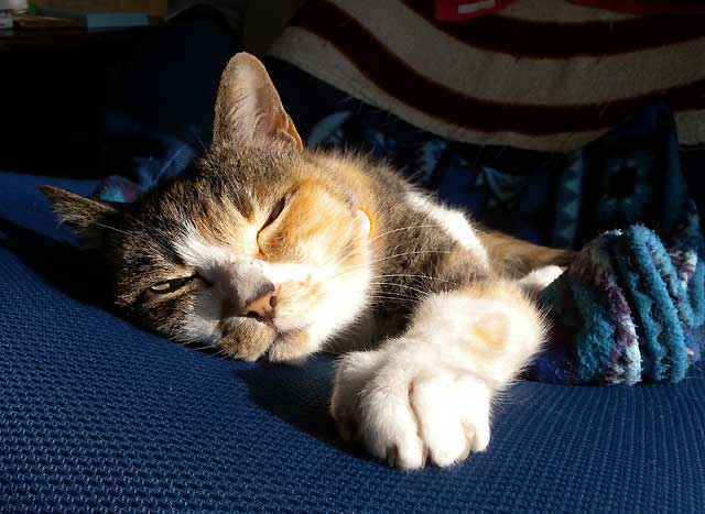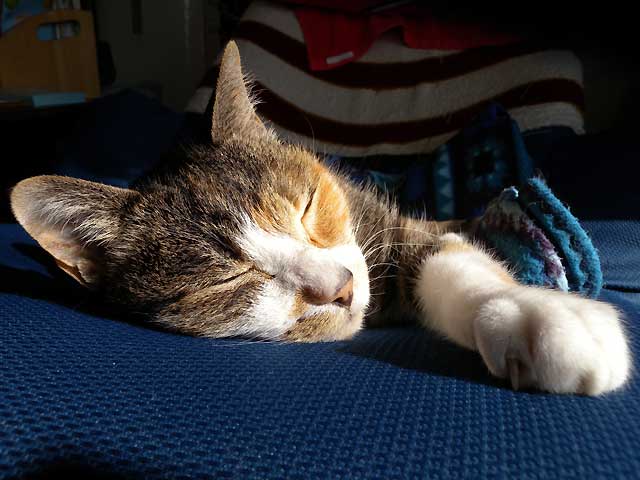 今まで通りポットの上には乗るし キャットタワーでも寛いでいます。
