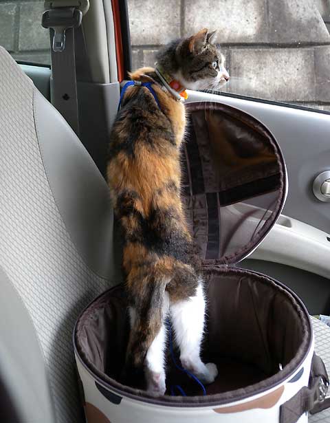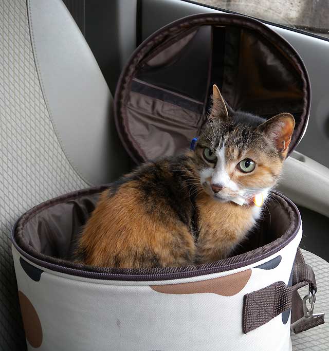(獣医さんの目の前で診察台からキャリーバックに飛び込んでました)