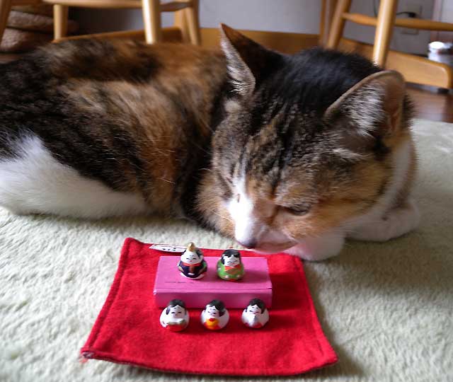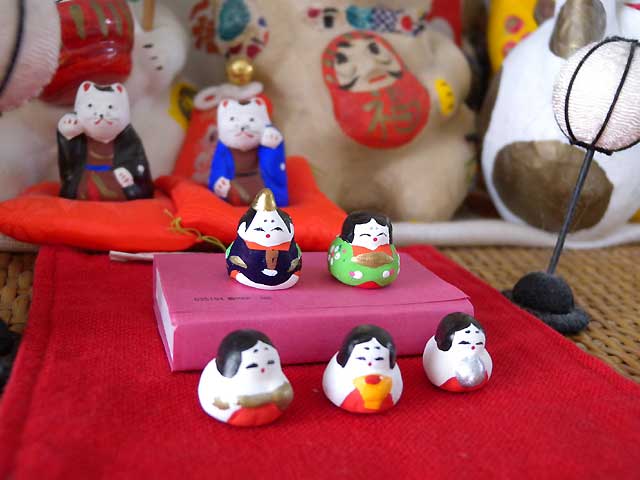 毎年ひな祭りの日に登場する豆鏡雛三人官女付きです。