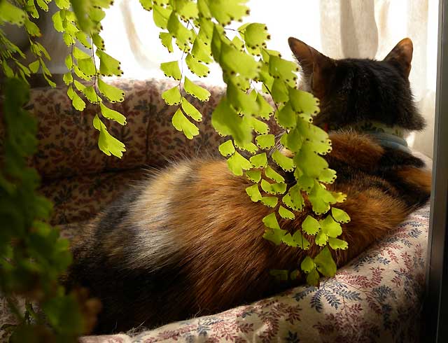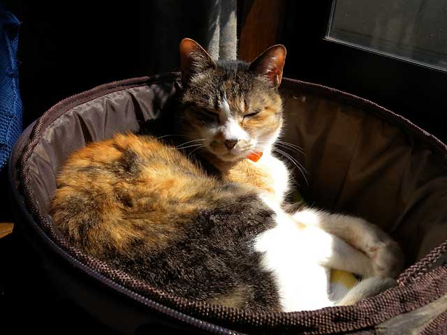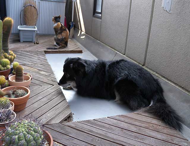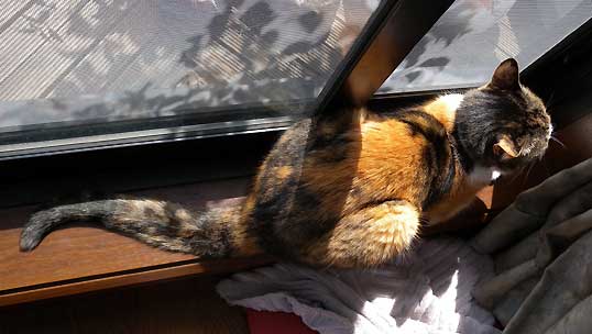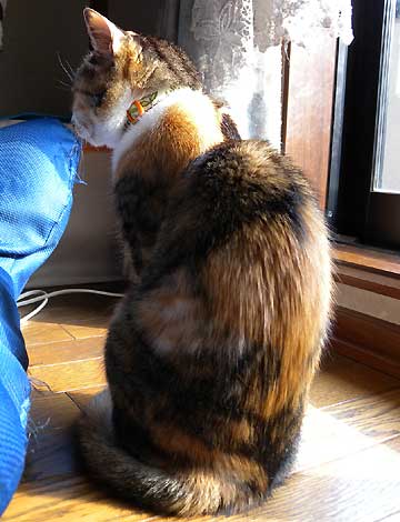 つくしお嬢様お日様がでるとサッシの桟にへばりつきます。