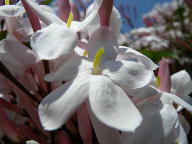 いそいそとコンデジをもって満開宣言までいかない羽衣ジャスミンを撮ってました。