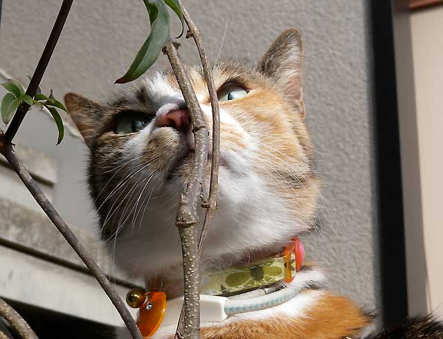 ↑ムスカリよりお外の雰囲気が気になったつくしに ぽちっを