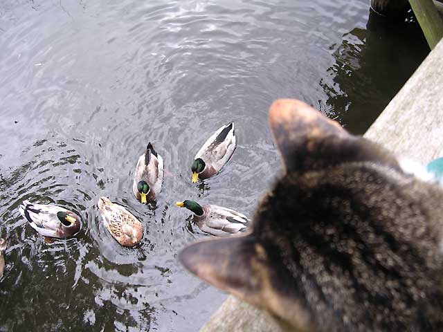 生鴨を身近でみているにも関わらず飛び出そうともしないつくしさんであります。