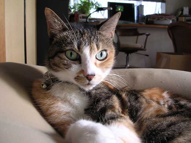 「ここにおいで~」と声をかけるとちゃんとその場所に来るつくしです。