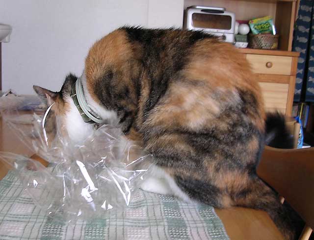 入っていたビニール袋に反応しても