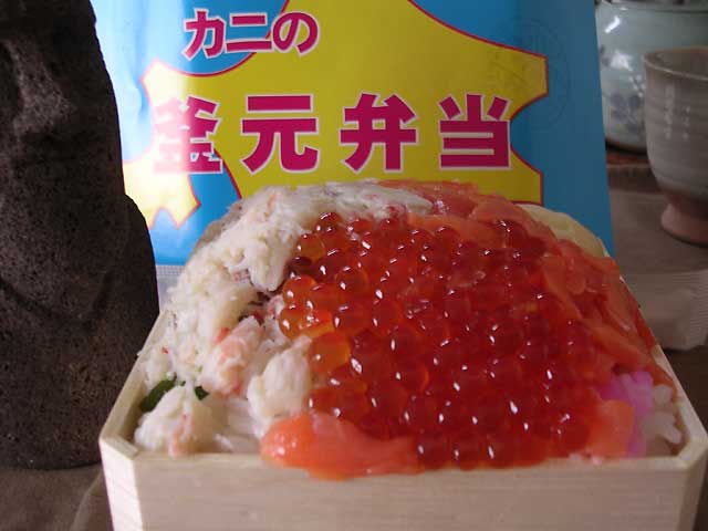 カニ いくら しゃけ いかがこれでもかっと言うくらいに乗った豪華なお弁当