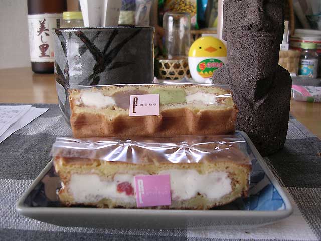 モアイ君と一緒に写っているのはワッフル・ケーキの店の
