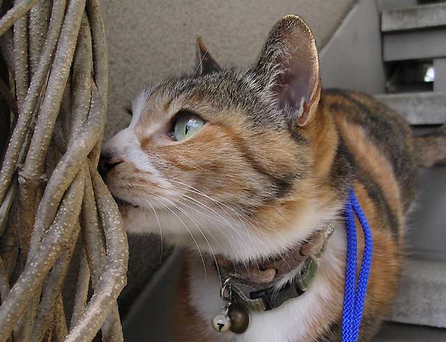 階段途中にある羽衣ジャスミンの茎というか幹とご挨拶。