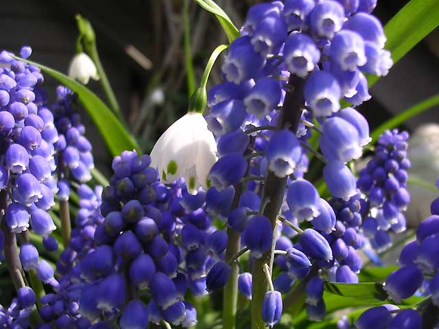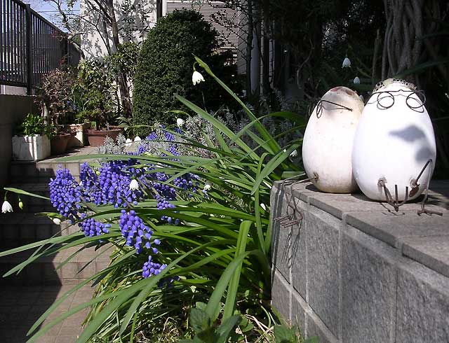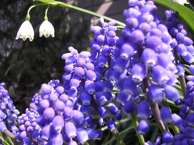 玄関先にはムスカリとスノーフレークが真っ盛り