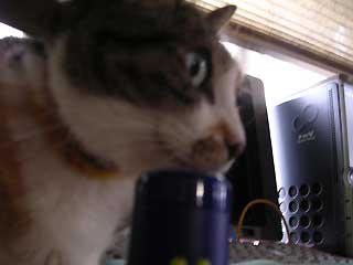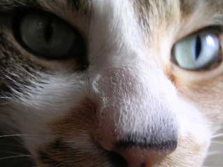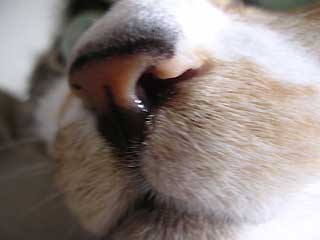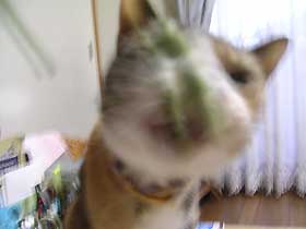 最初は同居人の鼻を肉球でちょんちょんと触って